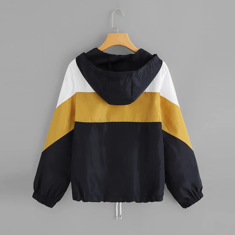 Coat Women Long Sleeve Patchwork Hooded Top Blouse Coats and Jackets Women Windbreaker Clothes chaqueta mujer For School girl