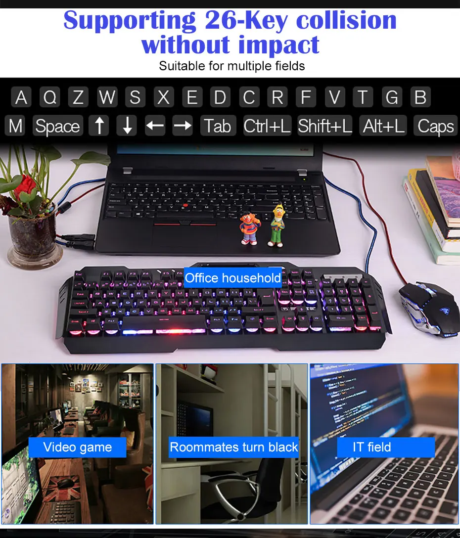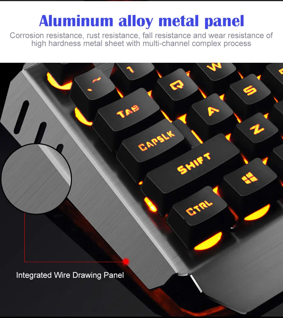 - Keyboard features: metal thickened panel, real mechanical feel, 26 keys, no flushing effect, adjustable.