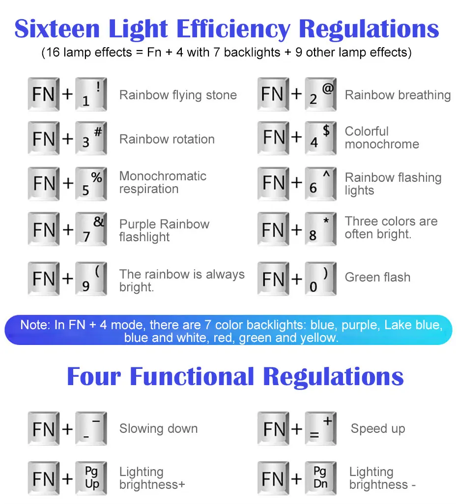 - Lighting effects: Colorful rainbow light/single light/16 kinds light