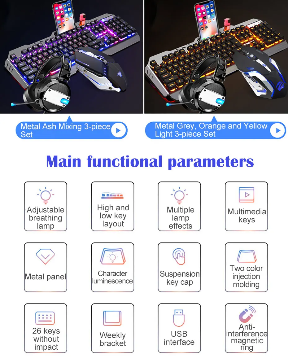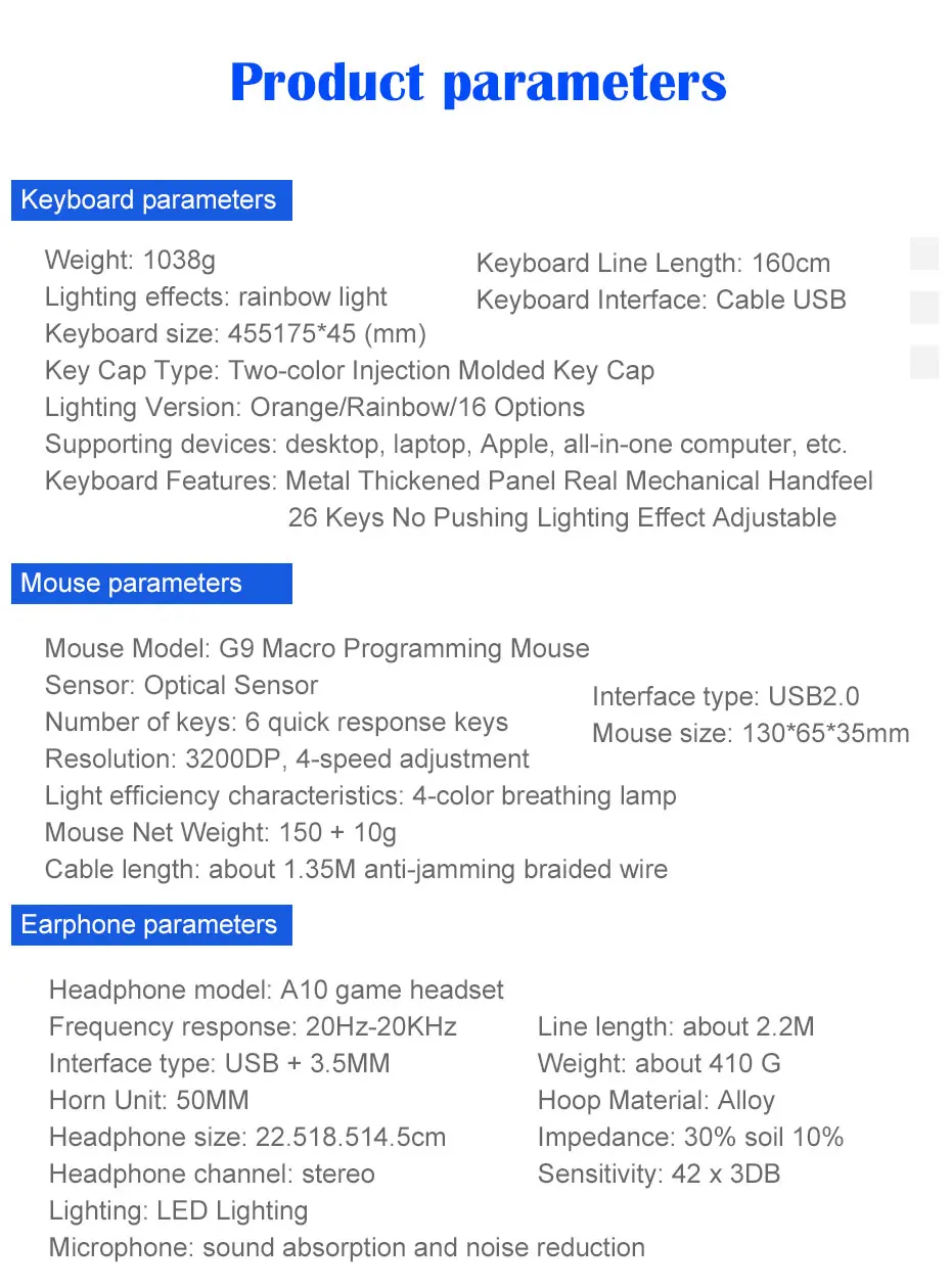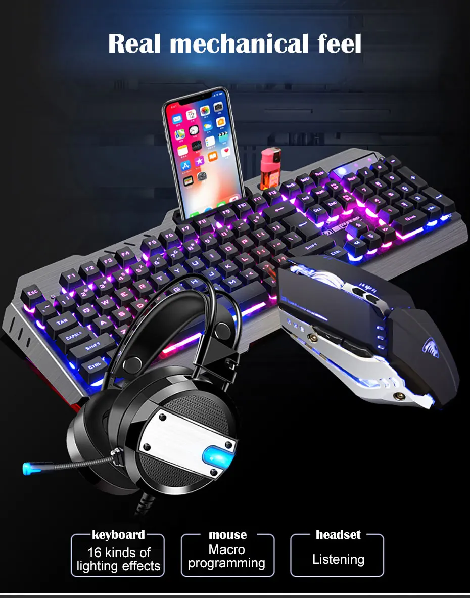 Mechanical Keyboard And Mouse Headset Three-piece Suit Desktop Computer Notebook Gaming Peripherals Home Internet Cafes E-sports