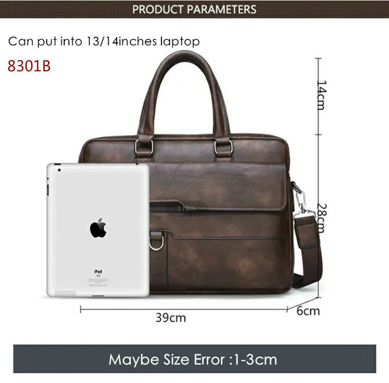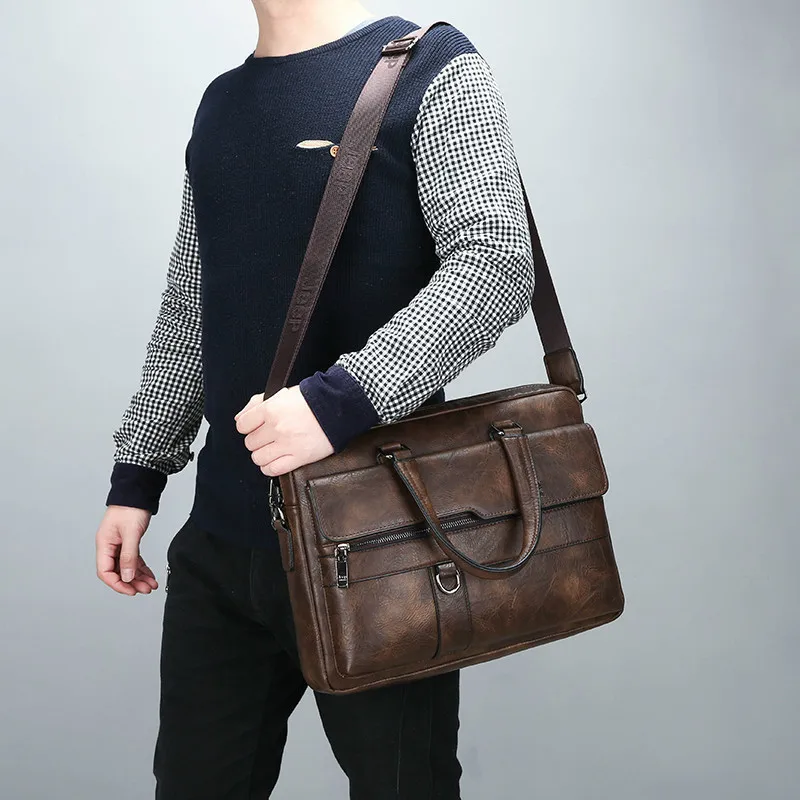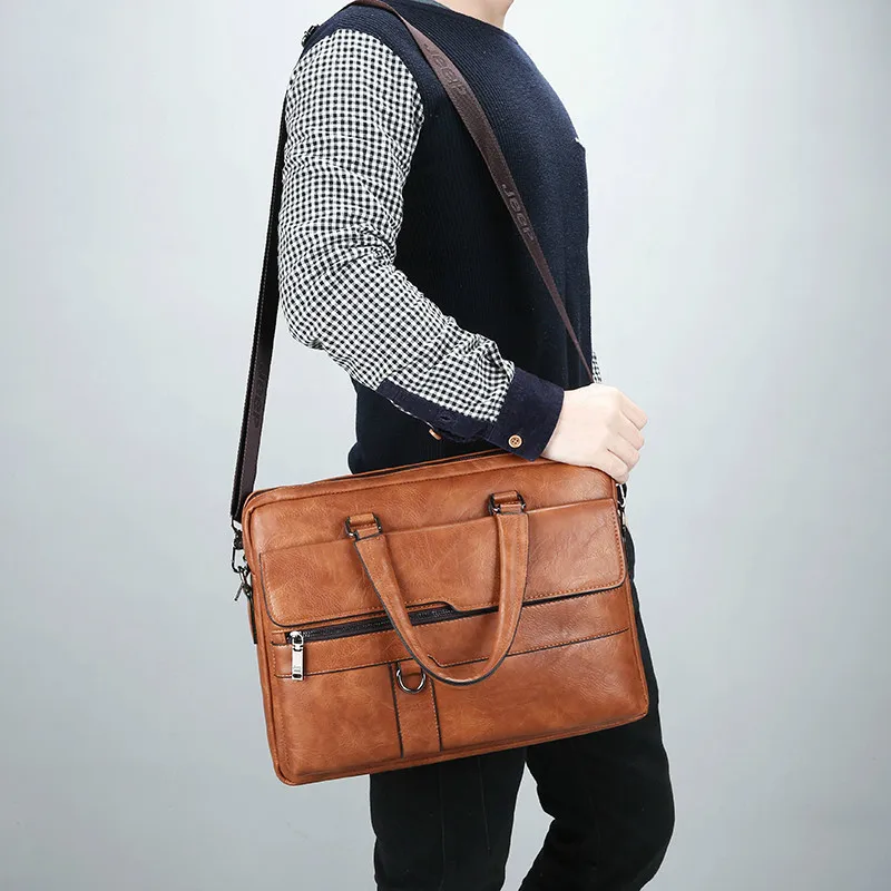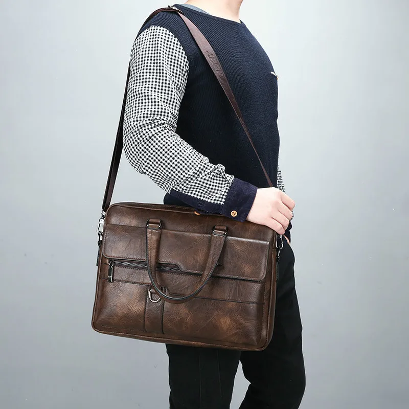 New Men Briefcase Bags Business Leather Bag Shoulder Messenger Bags Work Handbag 14 Inch Laptop Bag Bolso Hombre Bolsa Masculina