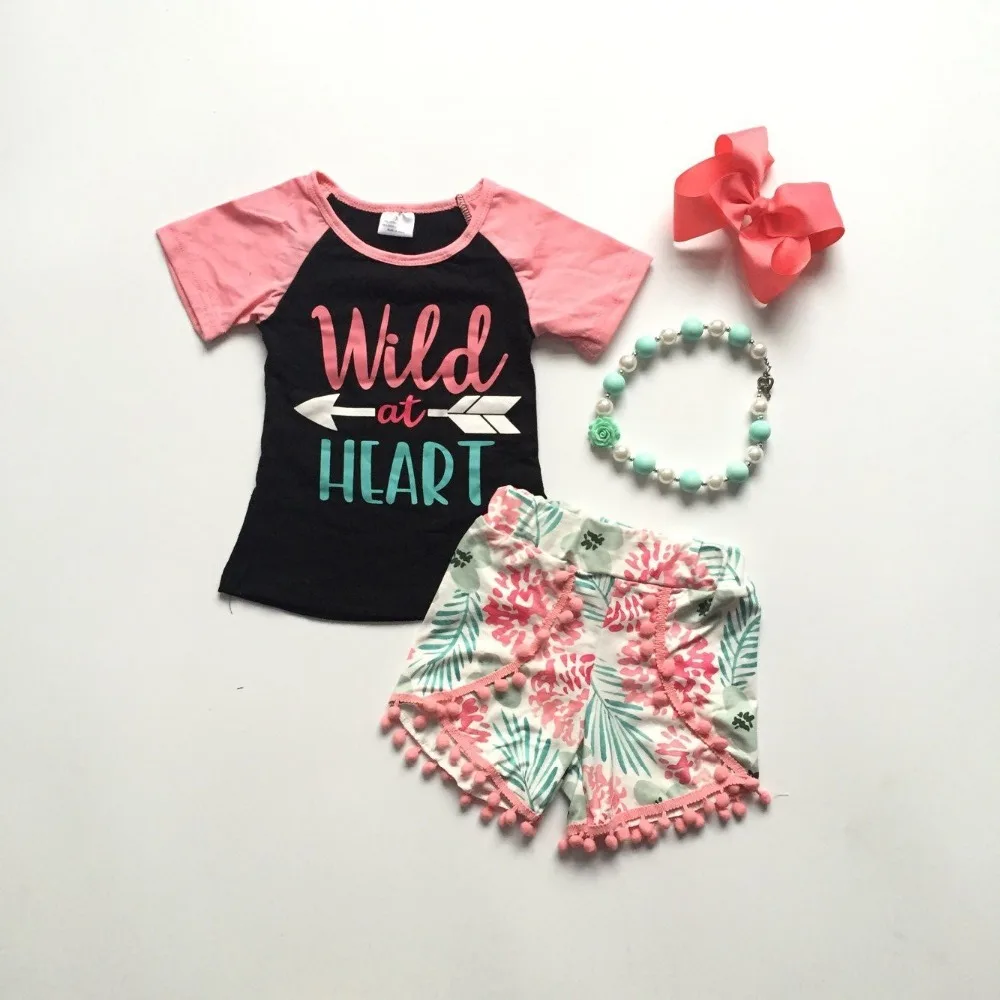 new Summer baby girls children clothes pom-pom shorts wild child about Jesus leopard outfits ruffles boutique match accessories