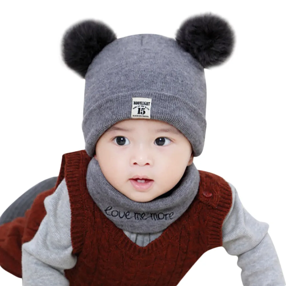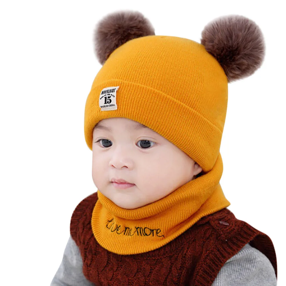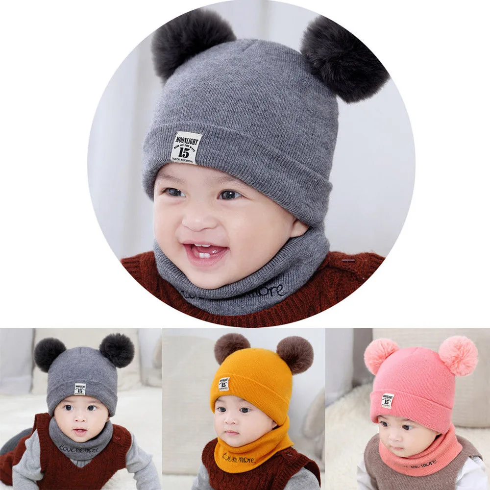 Newborn Kids Baby Boy Girl Pom Hat Winter Warm Knit Crochet Beanie Cap Scarf Set