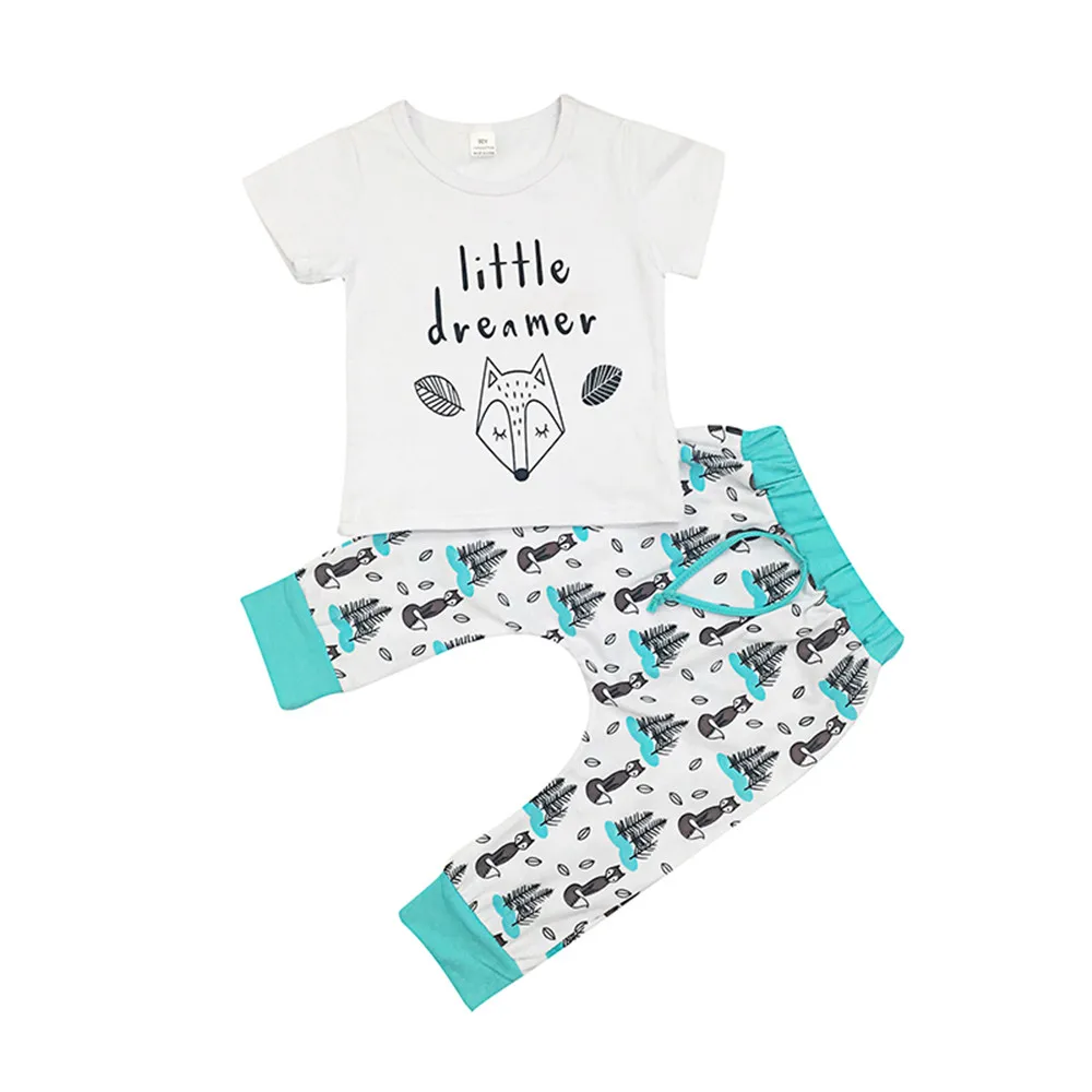 summer Newborn Baby Boy girl 2PC Newborn Infant Baby Girls Letter Printing Top T-shirt +Pants Clothes Set kiz bebek giyim #06